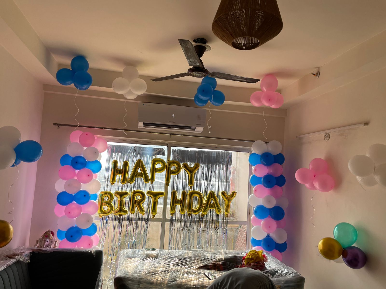 - 32 Balloons On Ceilling 8 Bunches of Pink,Tellow,Green,Blue