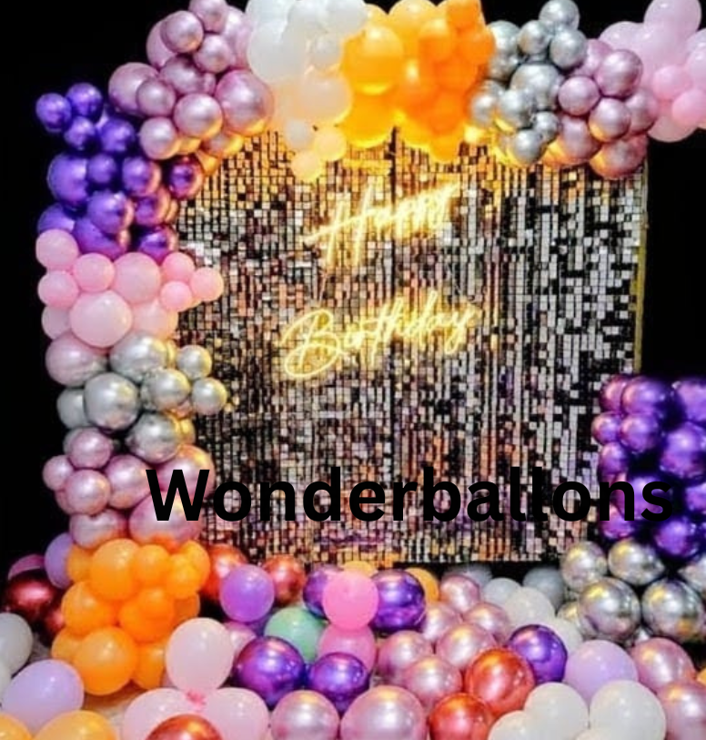 - Arch of 250 balloons of colour 50 silver Chrome,50 purple Chrome, 50 light pink chrome,50 pink pastel,25 peach and 25 white latex balloons